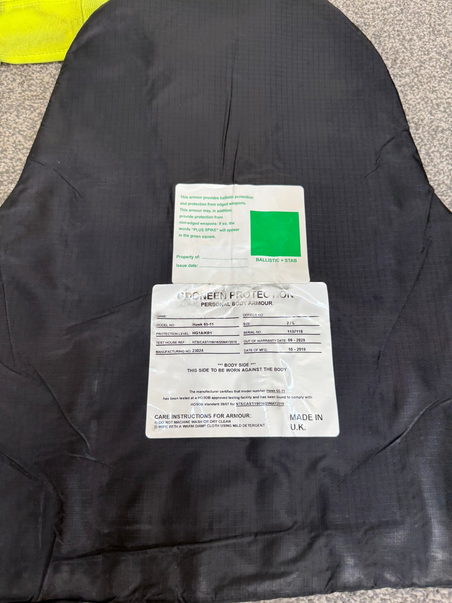 Ex Police Cooneen Body Armour Vest MEDIUM - Anti Stab & Ballistic HG1A & KR1