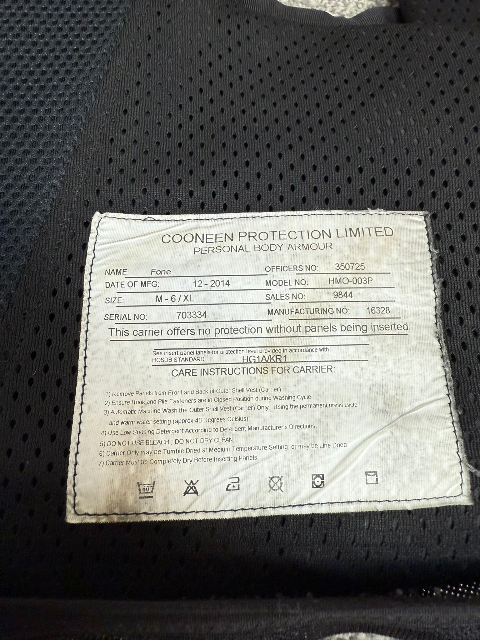 This is a used/untested body armour. It's protection capabilities cannot be verified or guaranteed.