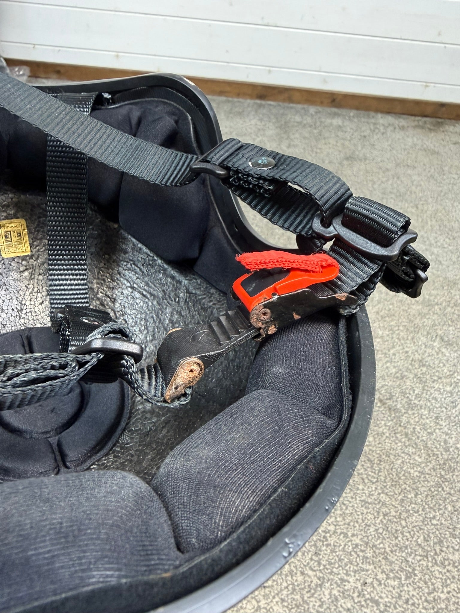 Used condition - The buckle has rusted / become loose and would benefit being replaced, otherwise the helmet is good overall - You will receive the one shown.