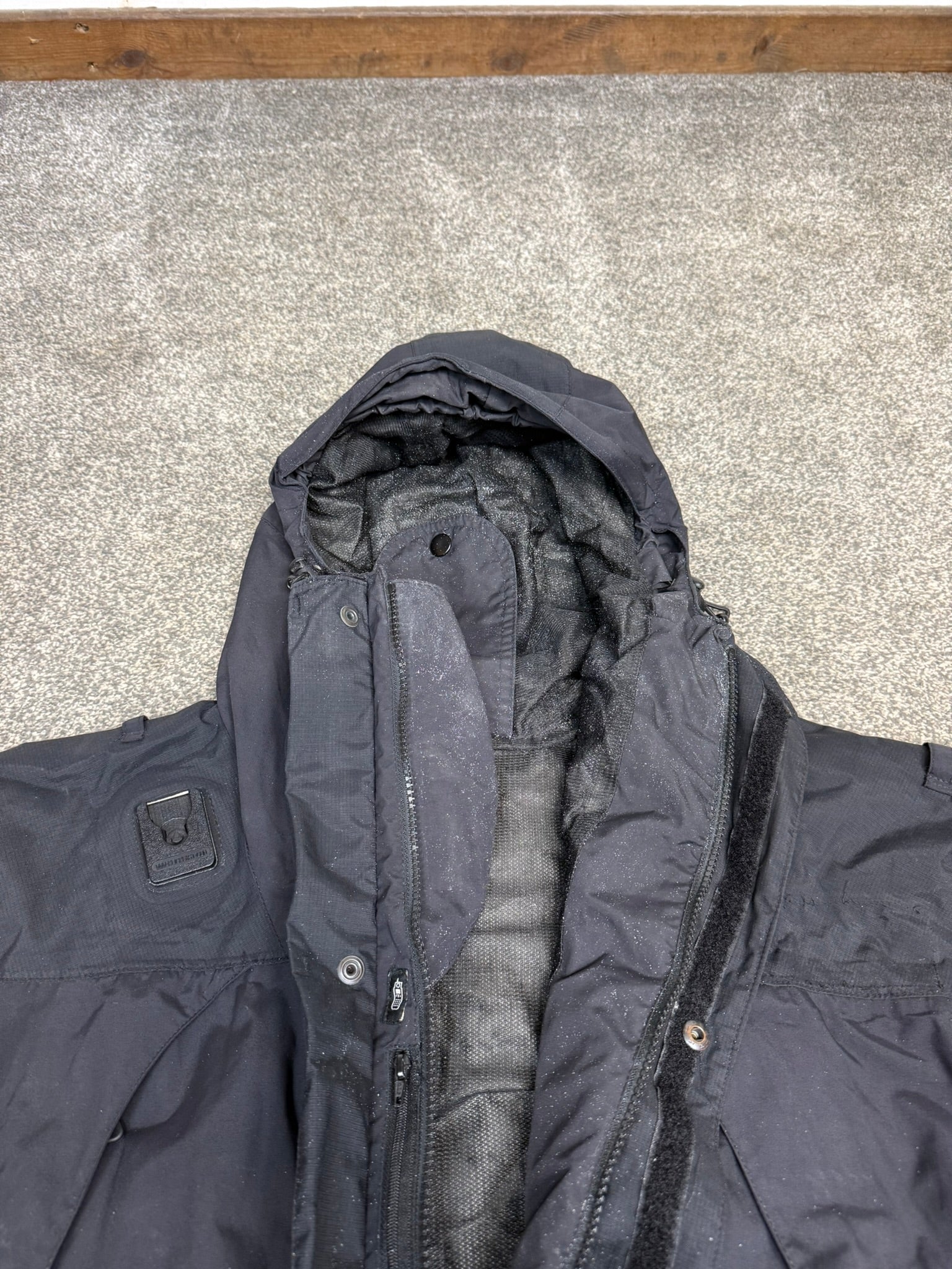 Grade B Not the best condition but life left in it... The white specs inside are off the waterproofing, and there is a patch of small nicks on the back (see last photos) - You will receive the jacket in the photos.